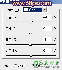 5、创建可选颜色调整图层,对红,白进行调整,参数设置如图13,14,效果如图15。这一步给图片增加青色。