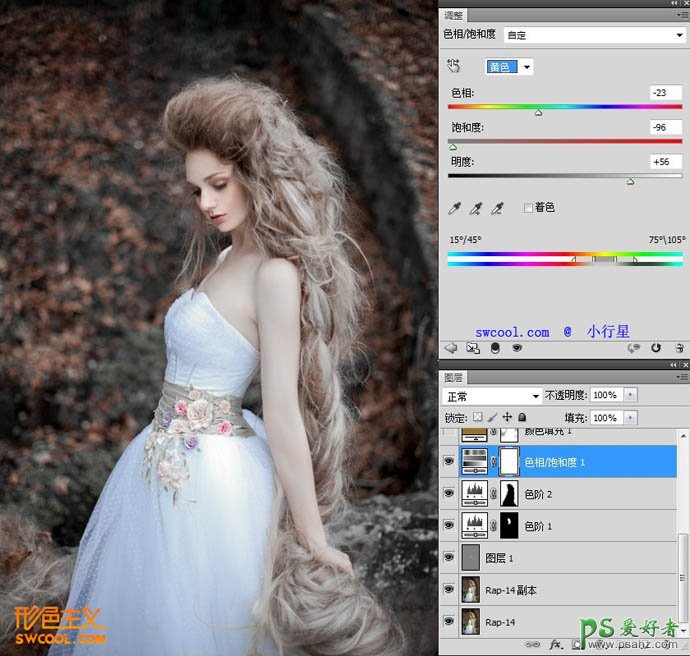photoshop调出柔美色彩长发欧美少女人像艺术照