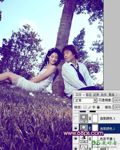 photoshop给浪漫的情侣写真照调出个性紫色效果