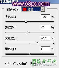 10、再创建可选颜色调整图层,对红色进行调整,参数设置如图26,确定后把图层不透明度改为:50%,效果如图27。这一步微调人物肤色。