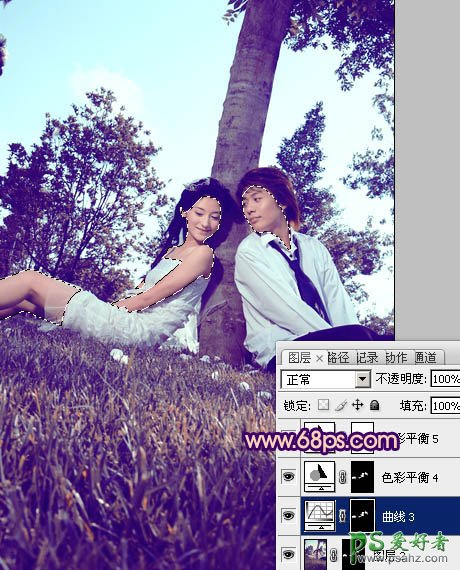 photoshop给浪漫的情侣写真照调出个性紫色效果