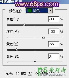 1、打开原图素材,创建可选颜色调整图层,对黄、绿、黑进行调整,参数设置如图1 - 3,效果如图4。这一步把背景主色转为黄褐色。