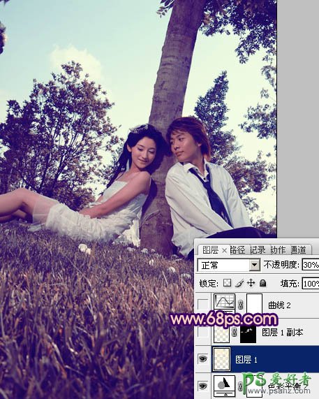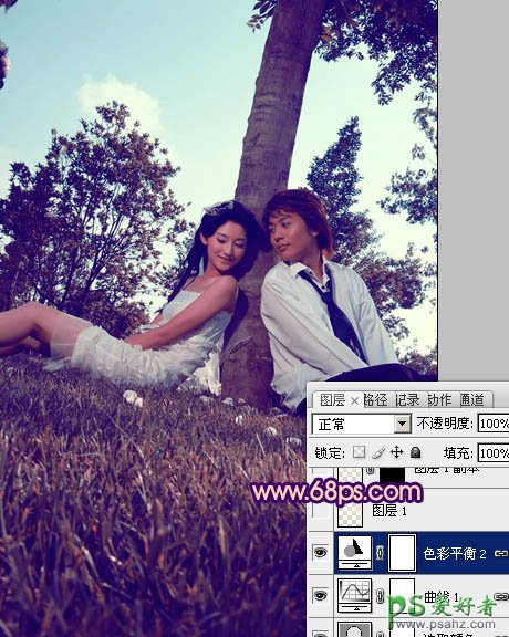 photoshop给浪漫的情侣写真照调出个性紫色效果