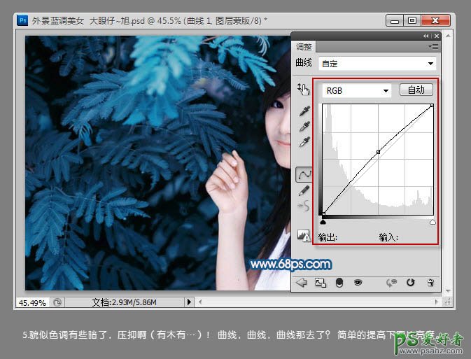 5、色调有些暗,创建曲线调整图层,简单的提高下图片的亮度。