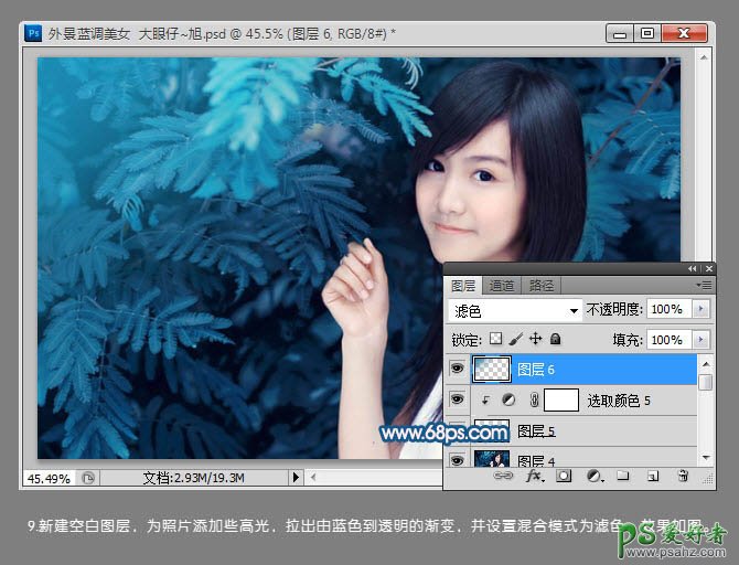 photoshop给清纯的小美女图片调出个性蓝调风格