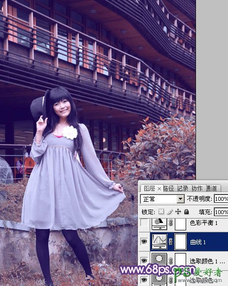 PS调色教程:给个性美女外景写真图片调出古典红蓝色
