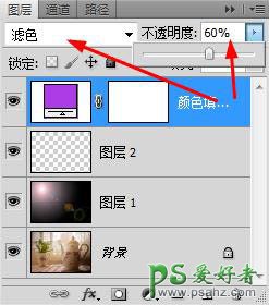 8、设置混合模式为“滤色”,并将不透明度设置为60%。