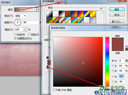 11、点击“创建新的填充或调整图层”按钮,在弹出的菜单中选择“渐变”,并设置。