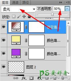 12、将图层的混合模式设置为“柔光”,不透明度设置为50%。