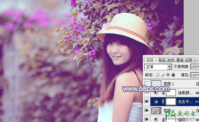 PS调色教程:给清新漂亮的花景美女调出甜美的暖紫色