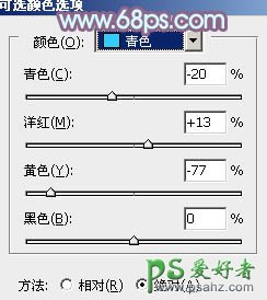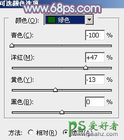 1、打开素材图片,创建可选颜色调整图层,对黄、绿、青、白、黑进行调整,参数设置如图1 - 5,效果如图6。这一步把背景颜色转为黄褐色。
