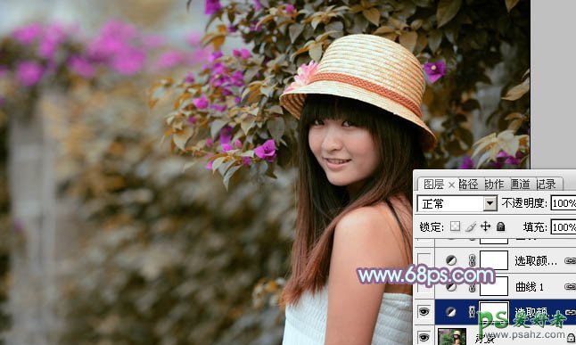 PS调色教程:给清新漂亮的花景美女调出甜美的暖紫色