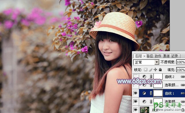 PS调色教程:给清新漂亮的花景美女调出甜美的暖紫色