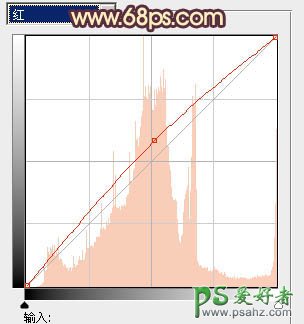 4、创建曲线调整图层,对红,蓝进行调整,参数设置如图7,8,确定后用黑色画笔把天空部分擦出来,效果如图9。这一步给图片增加暗褐色。