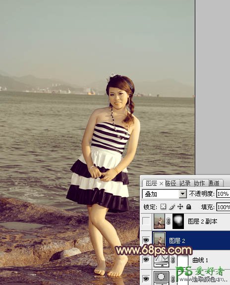 5、新建一个图层,按Ctrl + Alt + Shift + E 盖印图层,混合模式改为“叠加”,不透明度改为:10%。这一步稍微增加图片的对比度。