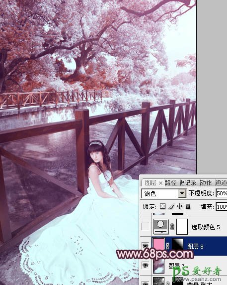 13、新建一个图层填充紫红色:#F594BC,混合模式改为“滤色”,不透明度改为:50%。按住Alt键添加图层蒙版,用白色画笔把右上角部分擦出来,效果如下图。这一步增加图片的高光。
