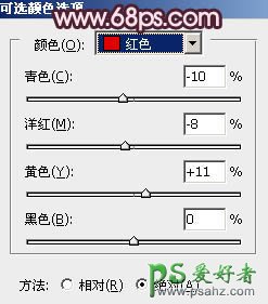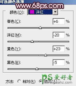 8、创建可选颜色调整图层,对红、洋红、白、黑进行调整,参数设置如图20 - 23,效果如图24。这一步稍微减少暗部颜色。