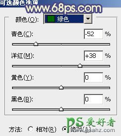 1、打开原图素材,创建可选颜色调整图层,对黄、绿、青进行调整,参数设置如图1 - 3,效果如图4。这一步把图片中的绿色转为橙黄色。