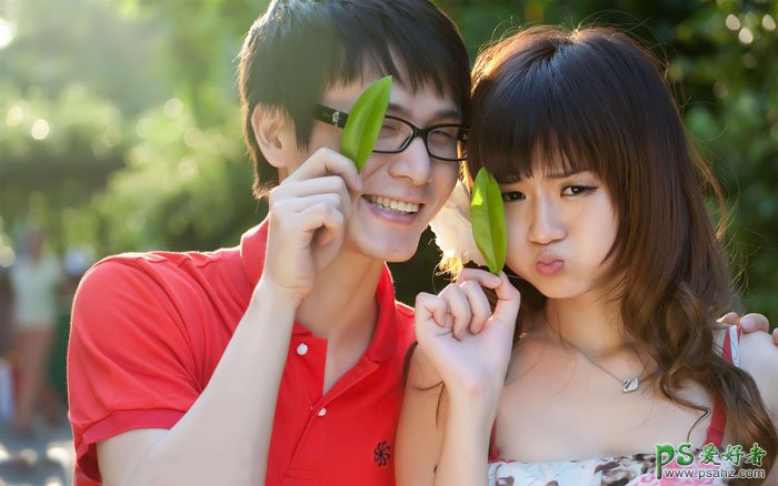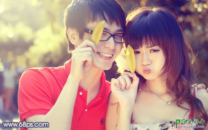 PS美女图片调色教程,PS给一对可爱的小情侣图片调出灿烂的阳光色,素材图片也是在阳光下拍摄的,只是暖色部分还不够强烈。处理的时候可以适当增加图片的暖色,给图片的高光及中间调部分增加橙黄色,主色确定后再给图片暗部增加一些补色即可。