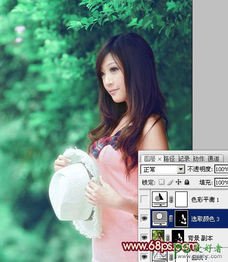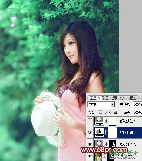 photoshop给树林中的甜美少女调出柔和的色彩