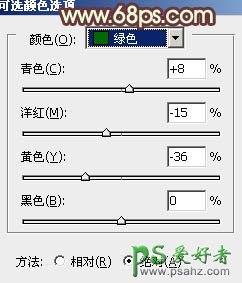 8、创建可选颜色调整图层,对绿,白进行调整,参数设置如图19,20,效果如图21。这一步微调人物的肤色。