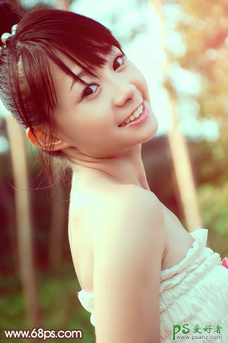PS美女照片调色实例教程,PS调色教程:给漂亮MM写真照调出美美的青黄蜜糖色,青黄色比较适合夏季外景图片,调色过程也比较简单。先简调整图片整体明暗,然后把背景主色转为黄绿色,高光部分加入一些淡青色即可。