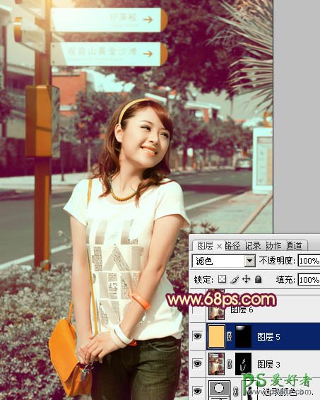 11、新建一个图层,填充橙黄色:#FFCF75,混合模式改为“滤色”,按住Alt键添加图层蒙版,用白色画笔把需要增加高光的部分擦出来,效果如下图。