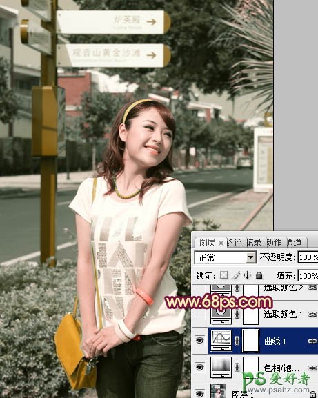 PS调色教程:给漂亮MM写真照调出美美的青黄蜜糖色