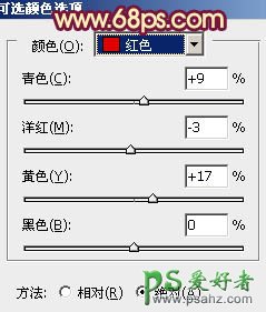 4、创建可选颜色调整图层,对红、白进行调整,参数设置如图8,9,效果如图10。这一步给图片的高光部分增加淡黄色。
