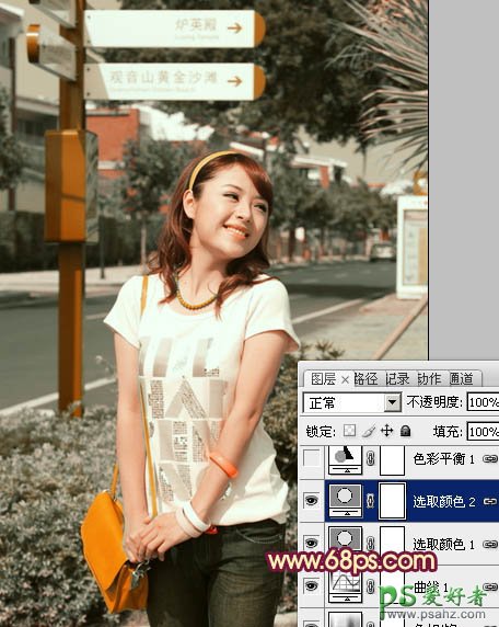 PS调色教程:给漂亮MM写真照调出美美的青黄蜜糖色