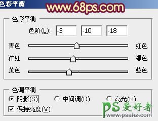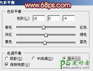 6、创建色彩平衡调整图层,对阴影,高光进行调整,参数设置如图14,15,效果如图16。这一步也同样增加图片高光部分的淡黄色。