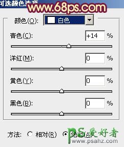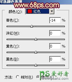 8、创建可选颜色调整图层,对红、黄、白、黑进行调整,参数设置如图18 - 21,确定后用黑色画笔把人物部分擦出来,效果如图22。这一步主要是给图片的暗部增加红褐色。