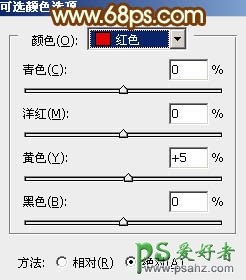 11、创建可选颜色调整图层,对红,白进行调整,参数设置如图27,28,确定后把图层不透明度改为:50%,效果如图29。这一步主要是给图片的高光部分增加淡黄色。