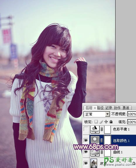 PS调色教程:给外景美女开心的形象照片调出个性色彩