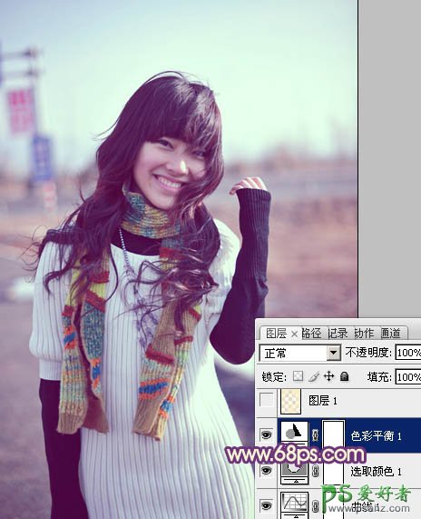 PS调色教程:给外景美女开心的形象照片调出个性色彩