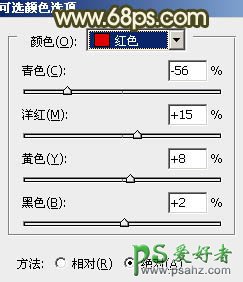 8、再创建可选颜色调整图层,对红、黄、白进行调整,参数设置如图15 - 17,确定后把图层不透明度改为:60%,效果如图18。这一步简单增加图片的红色及高光部分的淡青色。
