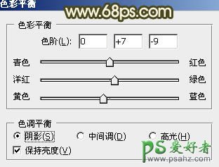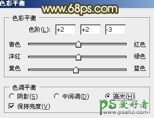 10、创建色彩平衡调整图层,对阴影、中间调、高光进行调整,参数设置如图20 - 22,确定后用黑色画笔把人物脸部及肤色部分擦出来,效果如图23。这一步加强图片高光部分的颜色。