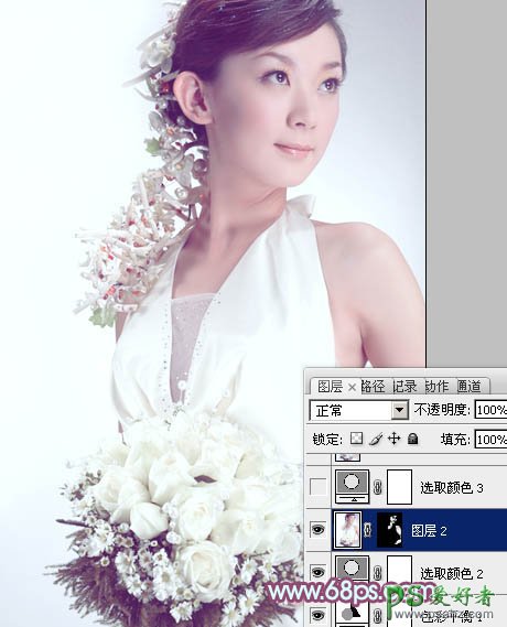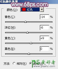 7、创建可选颜色调整图层,对红、白、黑进行调整,参数设置如图18 - 20,效果如图21。这一步微调肤色及头发颜色。