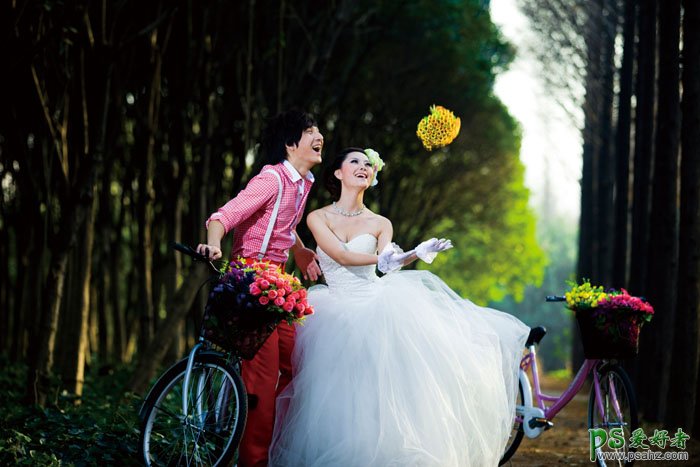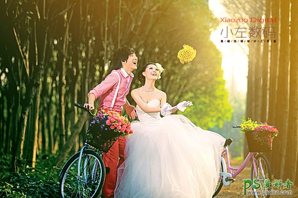 PS给密林中的情侣婚片调出柔美的黄绿阳光色