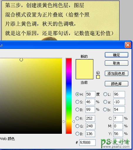 3、创建淡黄色纯色层,图层混合模式设置为正片叠底(给整个照片添上黄色调,秋天的色调哦,就是这个原因,还是那句话,记数值毫无价值),如果觉得黄色太过,可以降低图层不透明度,大概70%左右吧。