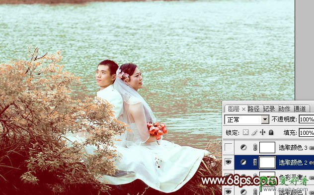photoshop调出漂亮的河景情侣外景婚纱照教程