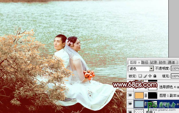 photoshop调出漂亮的河景情侣外景婚纱照教程