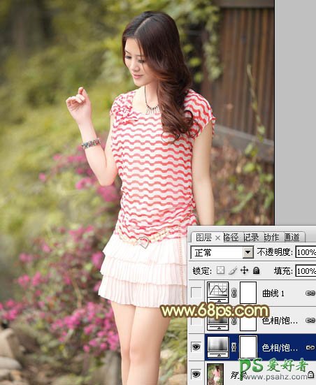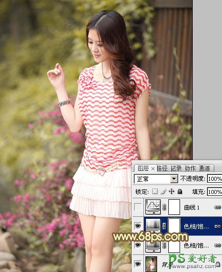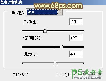 2、按Ctrl + J 把当前色相/饱和度调整图层复制一层,增加背景部分的黄绿色,效果如下图。