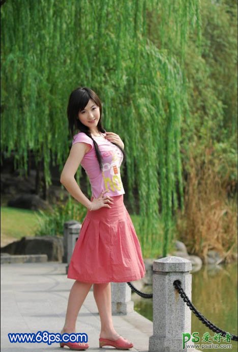 PS美女写真图片调色教程,photoshop给清纯少女写真照调出斑斓的蓝色背景,本教程主要介绍人物照片的调色和背景的处理。原图素材背景部分取景相当不错,不够没有拍摄清晰。处理的时候干脆用滤镜来模糊处理,再适当调整下颜色,效果也别具风格。