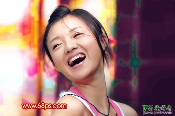 PS给暗光清春少女图片调出光亮绚丽背景效果