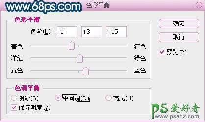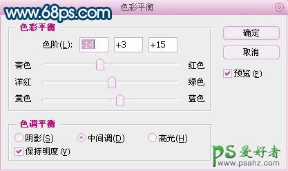 4、创建色彩平衡图层,数值如图4,5: