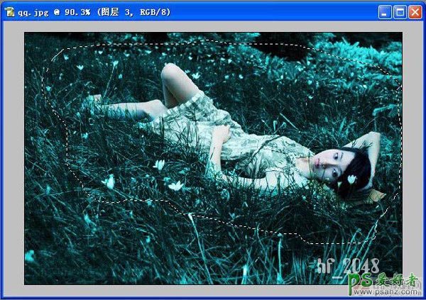 PS简单几步给灰暗的美女婚片调出清新的绿色效果