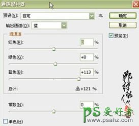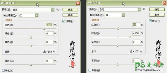 2、创建通道混合器调整图层,对个颜色进行调整,参数及效果如下图。