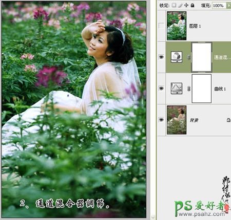 PS简单几步给灰暗的美女婚片调出清新的绿色效果