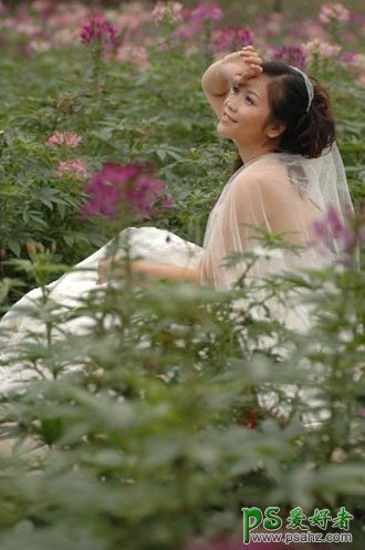 ,PS简单几步给灰暗的美女婚片调出清新的绿色效果,PS修图教程。